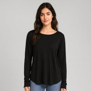Our Slouchy Long Sleeve Tee is crafted from a lightweight 50% Cotton, 50% Polyester blend, giving it the perfect balance of softness, comfort, and drape. It feature a slightly loose silhouette that flatters the body while the marrow hems add a subtle, elevated detail.